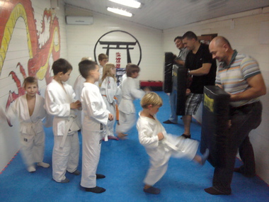 Predškolska grupa na treningu najviše vremena provodi u igri i učenju osnovnih gimnastičkih elemenata kao što su kolutovi, razna preskakivanja preko prepreka, te osnove borilačkih vještina (udarci nogama, rukama, padovi...)